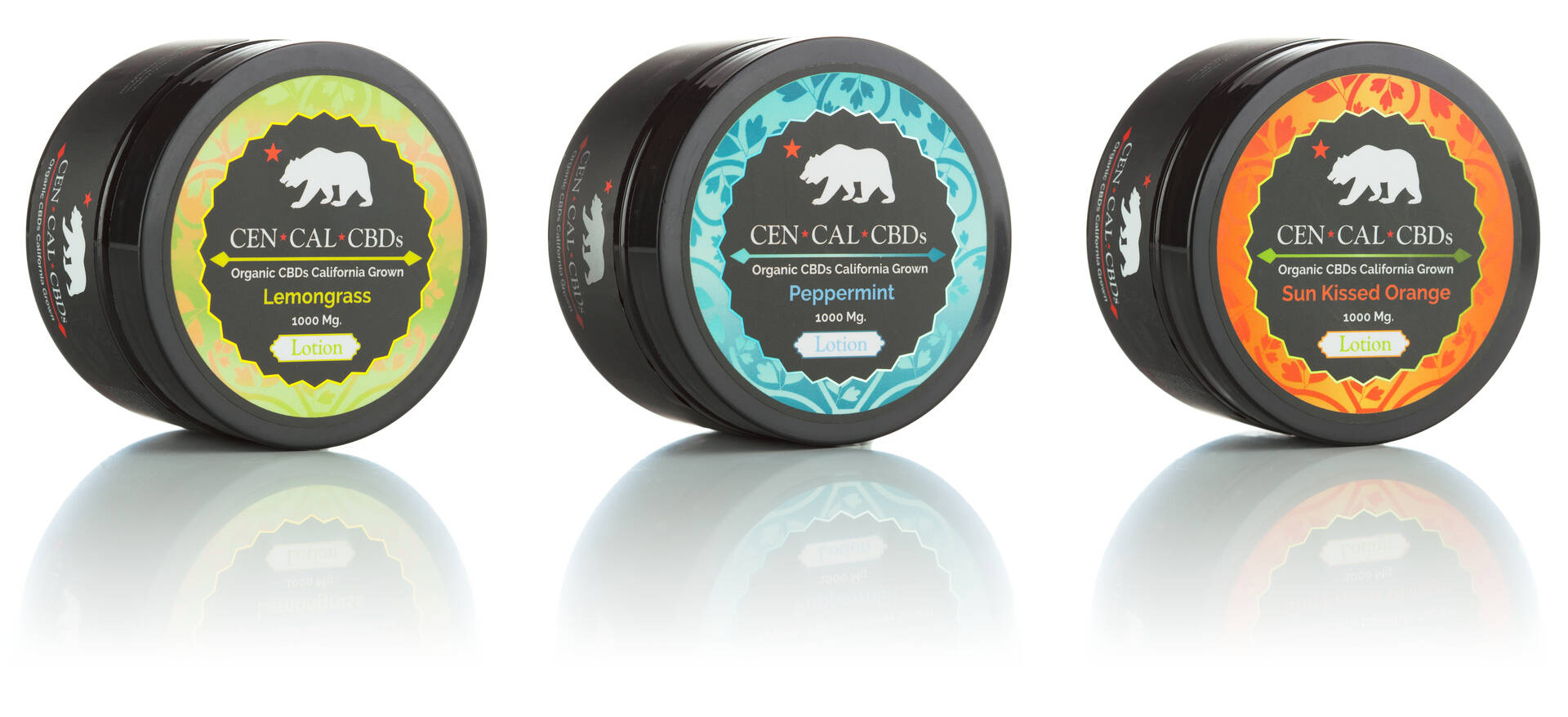 CenCal CBD Lotions Lineup. Shot in studio on 100% white background.